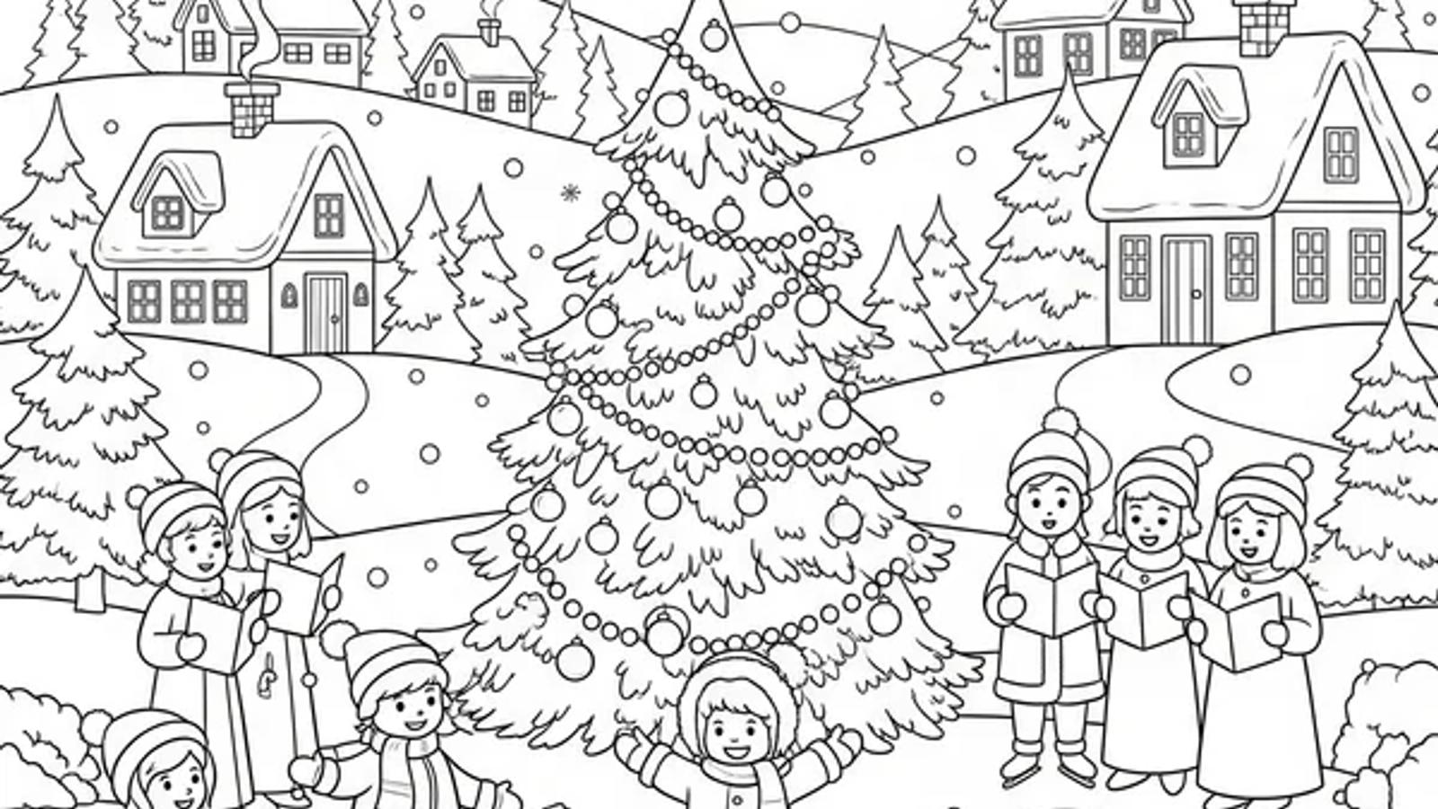 - Pick scenes that invite conversation or cooperative coloring: Family Decorating the Christmas Tree, Winter Festival In The Village, Winter Wonderland Festivities